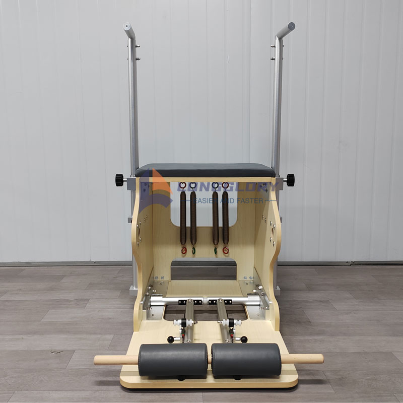 3. Cathaoirleach Pilates: Bunús an Dearaidh: Comhtháthaíonn sé pedal, spriongaí inchoigeartaithe, lámha neamh-duillín, agus suíochán compordach, le dearadh cliste a chothromaíonn feidhmiúlacht agus iniomparthacht. Fócas Oiliúna: Leagtar béim ar chomhordú géaga aontaobhach agus cothromaíocht dhinimiciúil a neartú, línte cromáin agus cos a dhealbhú go beacht, agus matáin lárnacha a ghníomhachtú go domhain. Buaicphointí Úsáide: Dlúth agus spás-shábháil, go háirithe oiriúnach do shuíomhanna baile; déanann friotaíocht inchoigeartaithe solúbtha oiriúnú do chéimeanna oiliúna éagsúla. Gluaiseachtaí Clasaiceach: Feabhsaíonn preas céim suas (mhaolú aer) agus oiliúint cothromaíochta aon-chosa neart na géaga níos ísle agus rialú cothromaíochta.